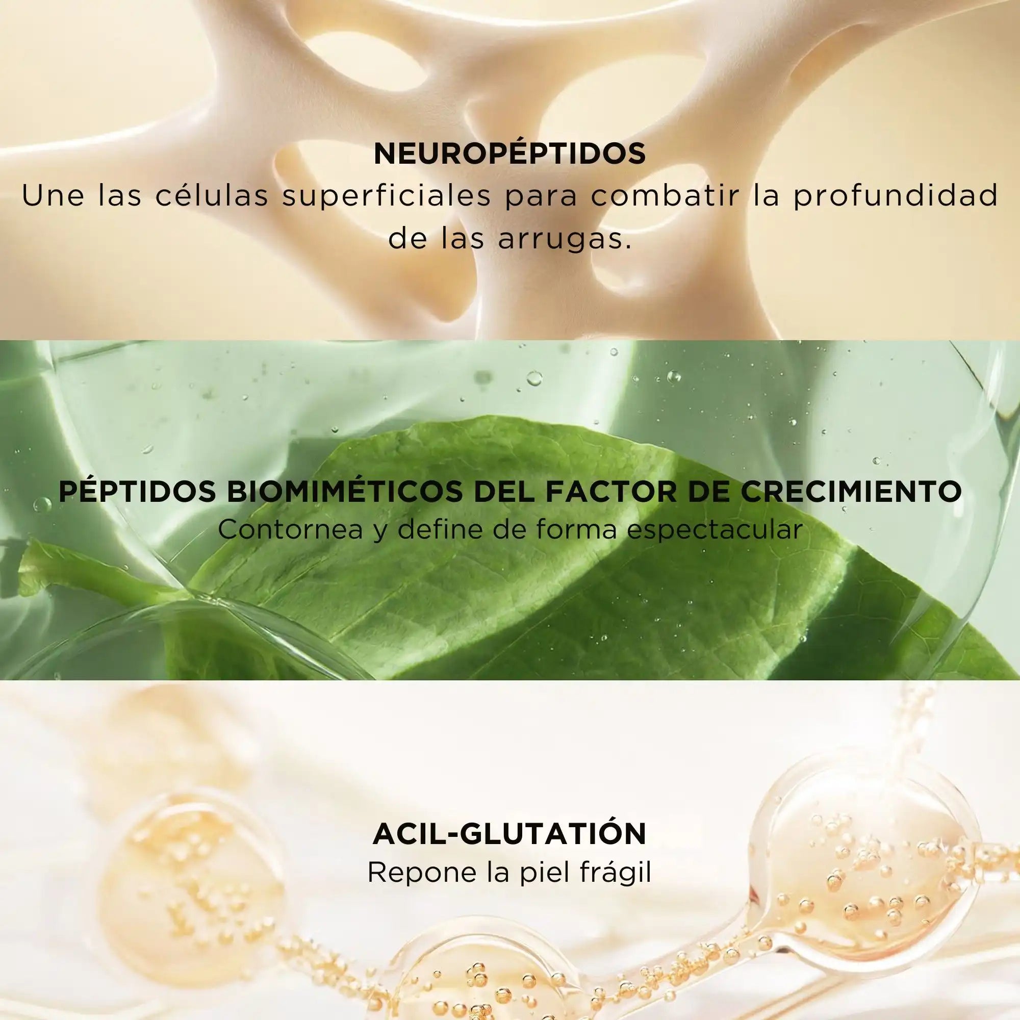 NEUROPÉPTIDOS: unen las células superficiales para combatir la profundidad de las arrugas.