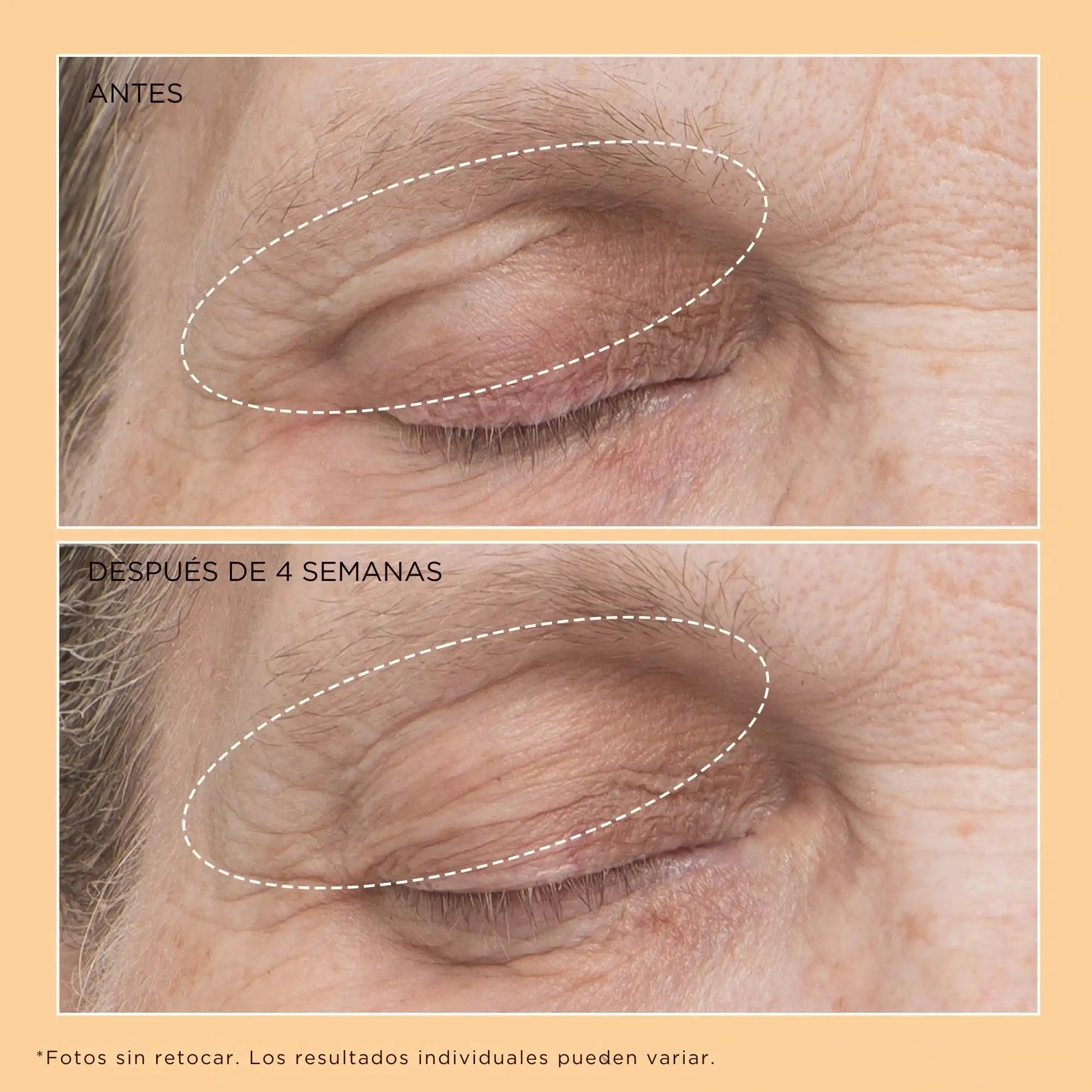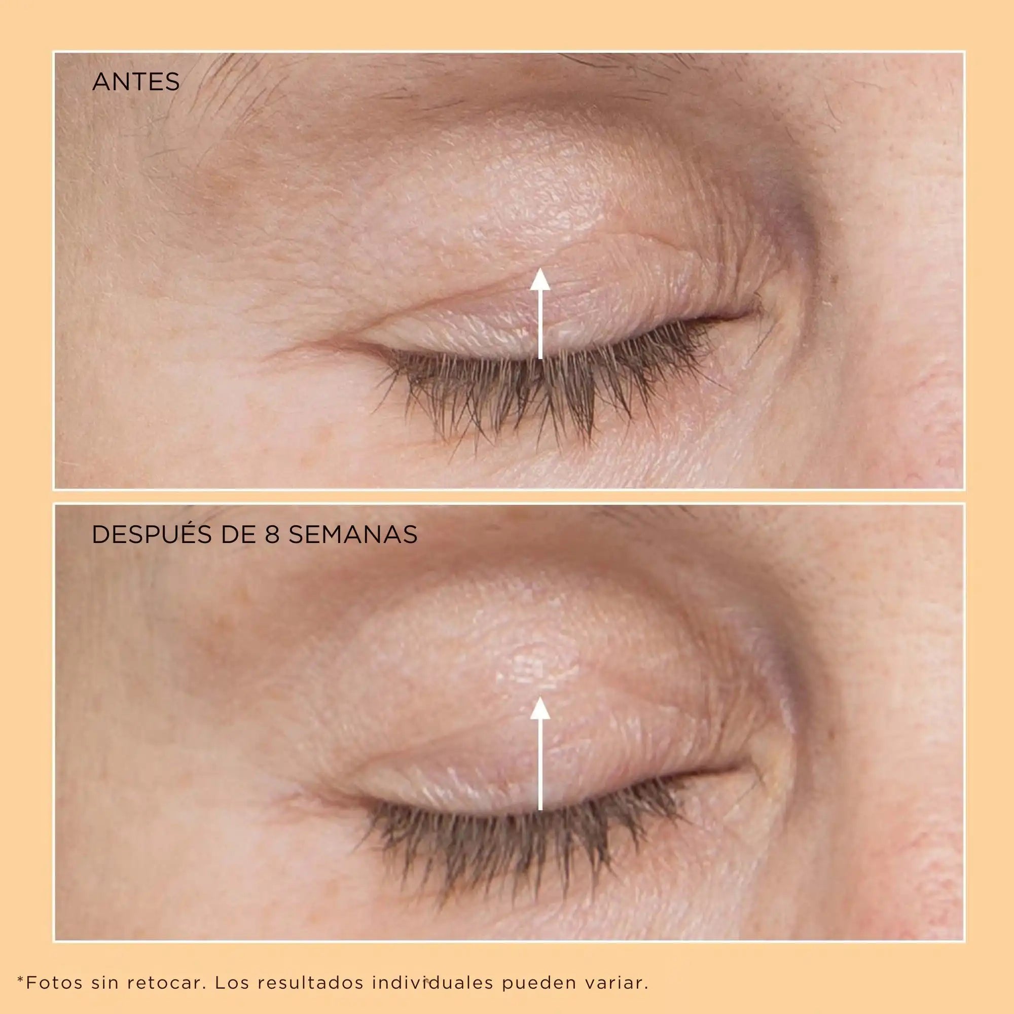 - Suaviza visiblemente los pliegues, las arrugas y la textura irregular de los párpados.